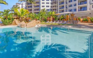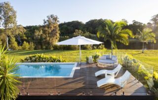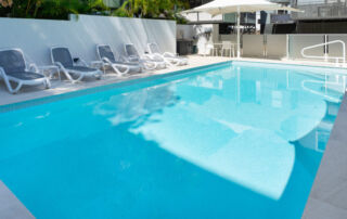 Today many architects are involved with the design of your new pool. Whilst these additions look fantastic a few pointers to help you and save problems down the track. Tile the face of your weir wall – as pebble prefers to be under water many weir walls are in direct sunlight and pebble become drummy if allowed to dry out. Castellations, provide access in some difficult situations, however pebble is a hand trowelled product and variations will occur, we find that tiled castellations provide a more acceptable finish.